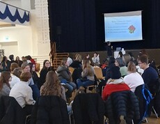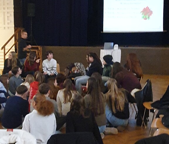 Erstmalig gab es heuer im BiGS vor den Weihnachtsferien eine gemeinsame Abschlussfeier in der Jahnturnhalle mit Weihnachtsquiz für alle Schülerinnen und Schüler, bei dem die einzelnen Klassen gemeinsam gegeneinander spielten. Wir gratulieren der 2BSFB zum Gewinn, bedanken uns bei euch fürs begeisterte Mitmachen und wünschen euch allen ein gesegnetes Weihnachtsfest, schöne Feiertage und erholsame Ferien!