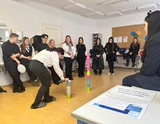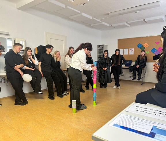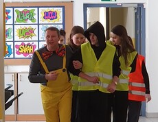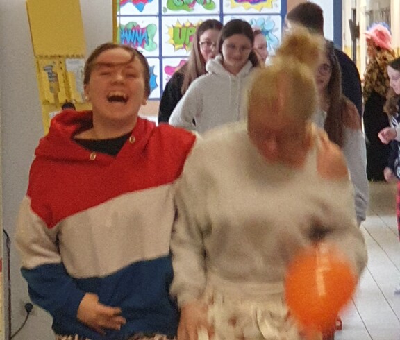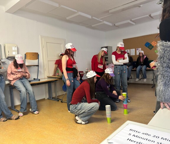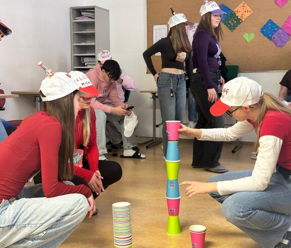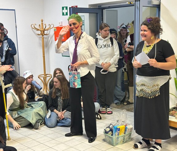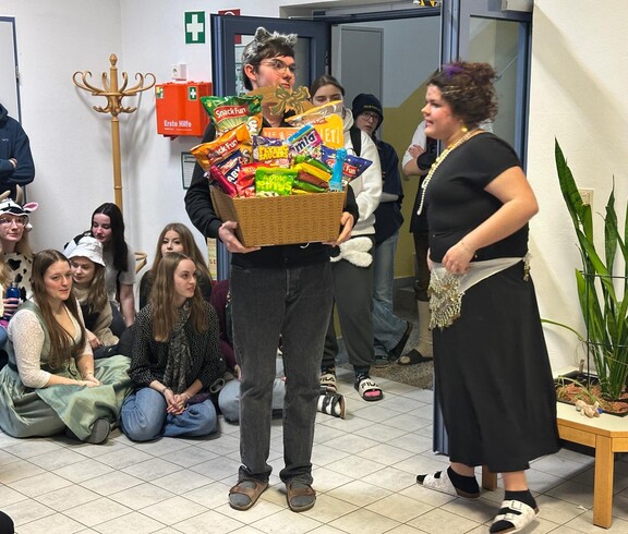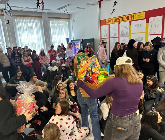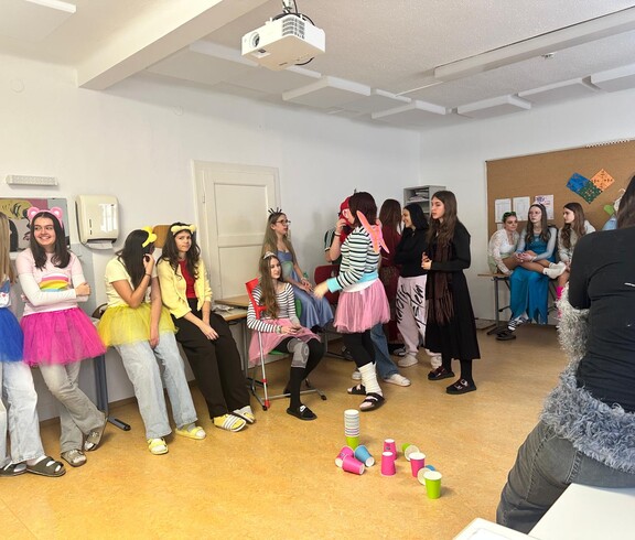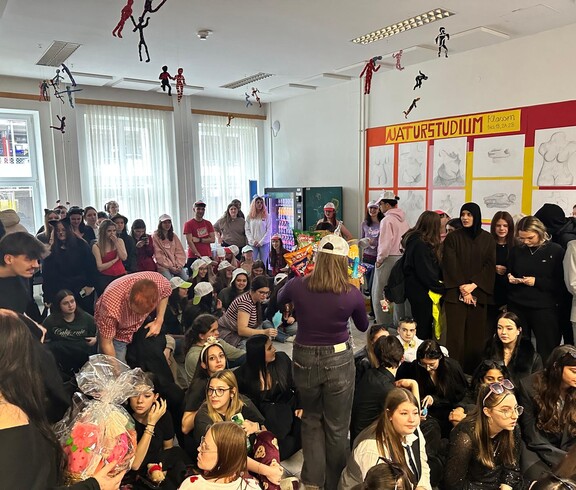 Am diesjährigen Faschingsdienstag gab es im B!GS erstmalig eine Faschingsfeier, die von der Schüler*innenvertretung, allen voran von Pia Singer aus der 3HLS, organisiert wurde. Neben Zuckerwatte und Popcorn zur Stärkung standen 9 verschiedene Spielstationen für Teambuilding-Aktivitäten der einzelnen Klassen auf dem Programm. Außerdem wurden noch Preise für die beste Verkleidung im Klassenverband und für die originellste Lehrer*innenverkleidung vergeben.